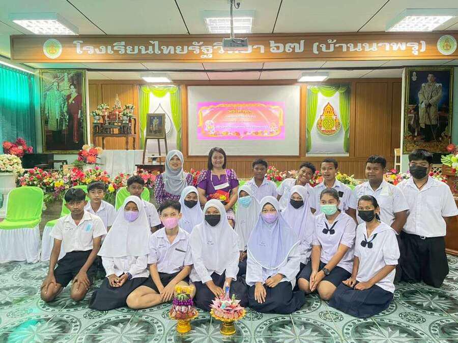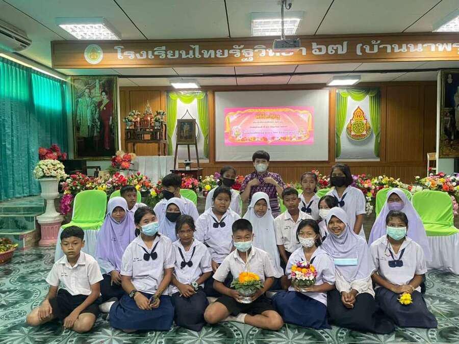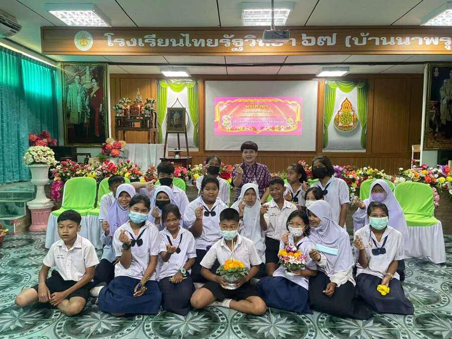 วันที่ 23 มิถุนายน 2565 โรงเรียนไทยรัฐวิทยา ๖๗ (บ้านนาพรุ) จัดกิจกรรมพิธีไหว้ครู ประจำปีการศึกษา 2565 เพื่อให้ผู้เรียนแสดงออกถึงความเคารพรักและระลึกถึงพระคุณของบูรพาจารย์ โดยนายสุภพ โพชนุกูล ผู้อำนวยการโรงเรียนไทยรัฐวิทยา ๖๗ (บ้านนาพรุ) ประธานในพิธี จุดธูปเทียนบูชาพระรัตนตรัย เจิมหนังสือเพื่อเป็นสิริมงคล จากนั้นตัวแทนนักเรียนนำกล่าวบทสวดบูชาบูรพาจารย์ และกล่าวคำปฏิญาณตน นำพานดอกไม้ พานเทียนธูปไหว้ครู เพื่อแสดงความเคารพ ปลูกฝังให้นักเรียนได้แสดงความกตัญญูกตเวทิตาต่อครูผู้ประสิทธิ์ประสาทวิชาความรู้ S:0