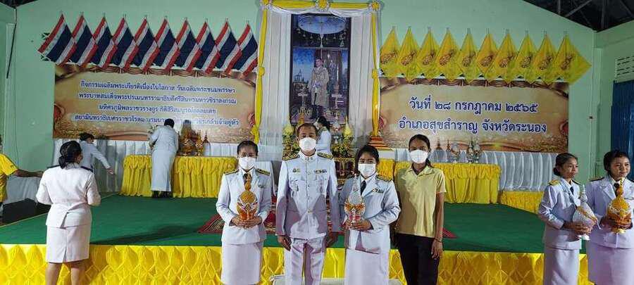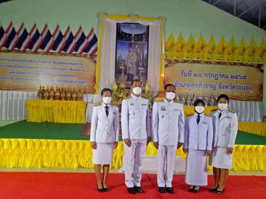 วันที่ 28 กรกฎาคม 2565 นายสุภพ โพชนุกูล ผู้อำนวยการโรงเรียนไทยรัฐวิทยา ๖๗ (บ้านนาพรุ) พร้อมด้วยตัวแทนคณะครูและบุคลากรทางการศึกษาโรงเรียนไทยรัฐวิทยา ๖๗ (บ้านนาพรุ) ร่วมตักบาตรข้าวสารอาหารแห้ง และร่วมลงนามถวายพระพรชัยมงคล ถวายพานพุ่มเงินพานพุ่มทอง เนื่องในวันเฉลิมพระชนมพรรษา พระบาทสมเด็จพระปรเมนทรรามาธิบดีศรีสืนทรมหาวชิราลงกรณพระวชิรเกล้าเจ้าอยู่หัว รัชกาลที่ 10 ณ ที่ว่าการ อำเภอสุขสำราญ จังหวัดระนอง S:0
