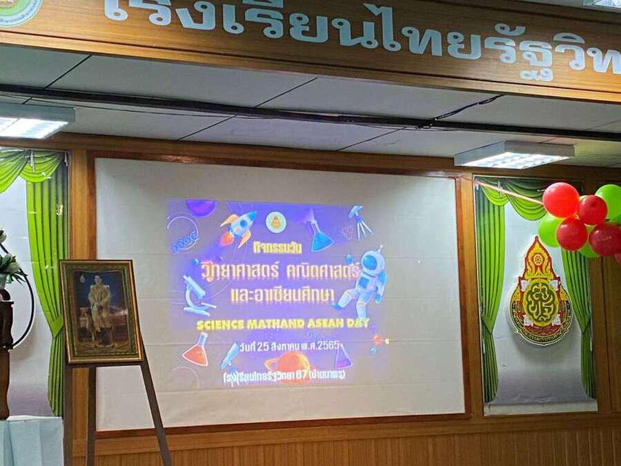วันที่ 25 สิงหาคม 2565 โรงเรียนไทยรัฐวิทยา ๖๗ (บ้านนาพรุ) จัดกิจกรรมสัปดาห์วิทยาศาสตร์ โดยบูรณาการร่วมกับกลุ่มสาระสังคมศึกษาฯ กิจกรรมอาเซียนศึกษา และกลุ่มสาระคณิตศาสตร์ กำหนดจัดกิจกรรมที่หลากหลาย เช่น กิจกรรมแข่งขันตอบปัญหาวิทยาศาสตร์ กิจกรรมแข่งขันเครื่องร่อนเดินตาม กิจกรรมแข่งขันตอบปัญหาคณิตศาสตร์ กิจกรรมฐานวิทยาศาสตร์ คณิตศาสตร์ อาเซียน Walk Rally Happy โดยมีนายสุภพ โพชนุกูล ผู้อำนวยการโรงเรียนไทยรัฐวิทยา ๖๗(บ้านนาพรุ) เป็นประธานในพิธีเปิด S:0