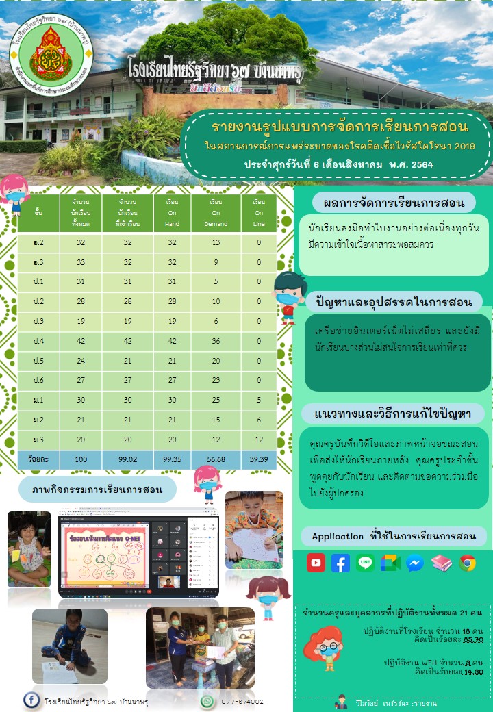 รายงานการจัดการเรียนการสอน 6/8/64