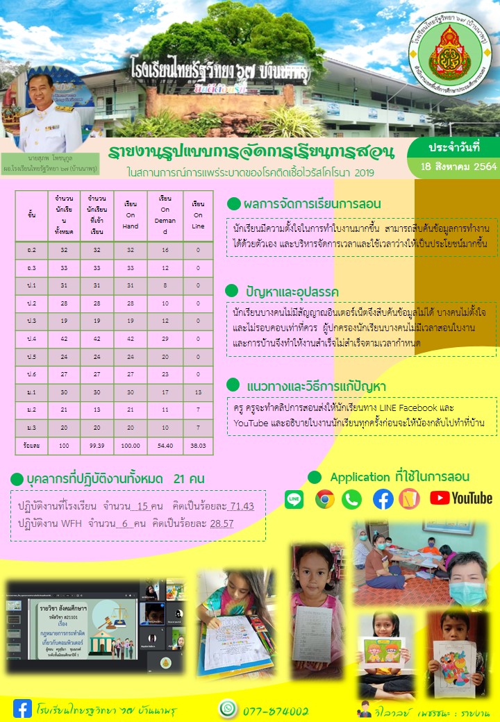 รายงานการจัดการเรียนการสอน 18/8/64