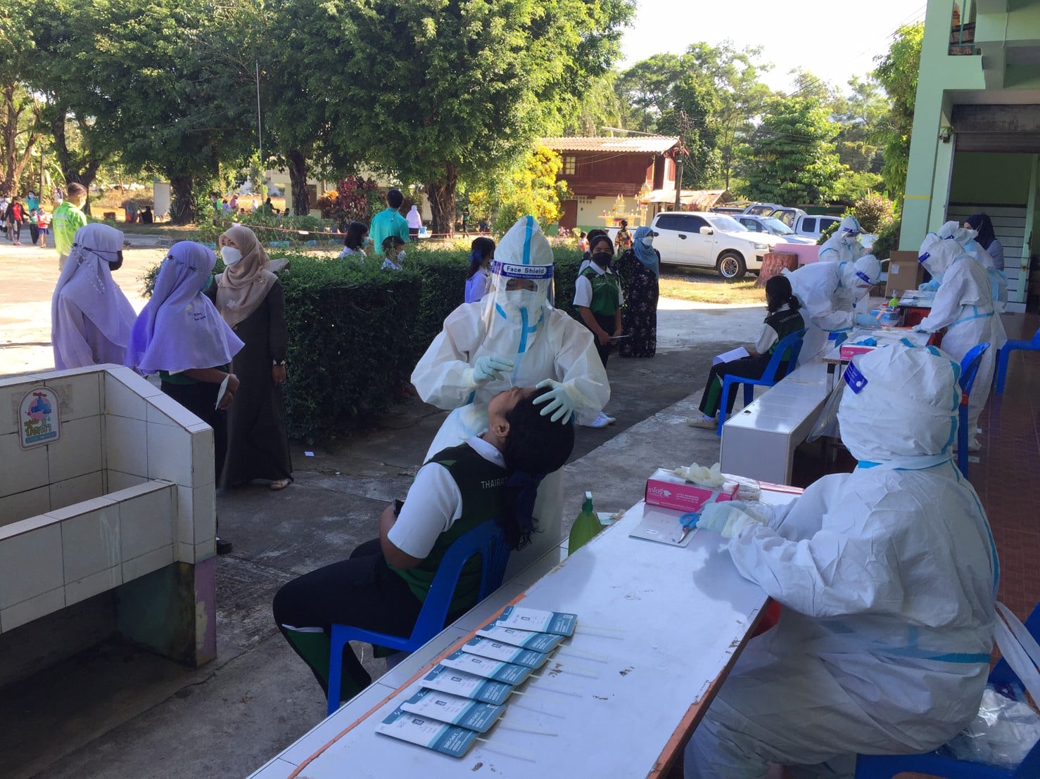 วันที่ 17 มกราคม 2565 โรงเรียนไทยรัฐวิทยา ๖๗ (บ้านนาพรุ) ดำเนินการตรวจ ATK ผู้อำนวยการโรงเรียน ข้าราชการครู บุคลากรทางการศึกษา นักเรียนและรวมไปถึงแม่ครัว เพื่อเตรียมความพร้อมสำหรับดำเนินการเปิดเรียน On Site ในวันที่ 18 มกราคม โดยได้รับการอนุเคราะห์ชุดตรวจ พร้อมด้วยเจ้าหน้าที่ในการดำเนินการตรวจ ATK จากสำนักงานสาธารณสุขอำเภอสุขสำราญ และโรงพยาบาลส่งเสริมสุขภาพตำบลควนไทรงาม จังหวัดระนอง ผลในการตรวจปรากฏผลเป็นลบทั้งหมด