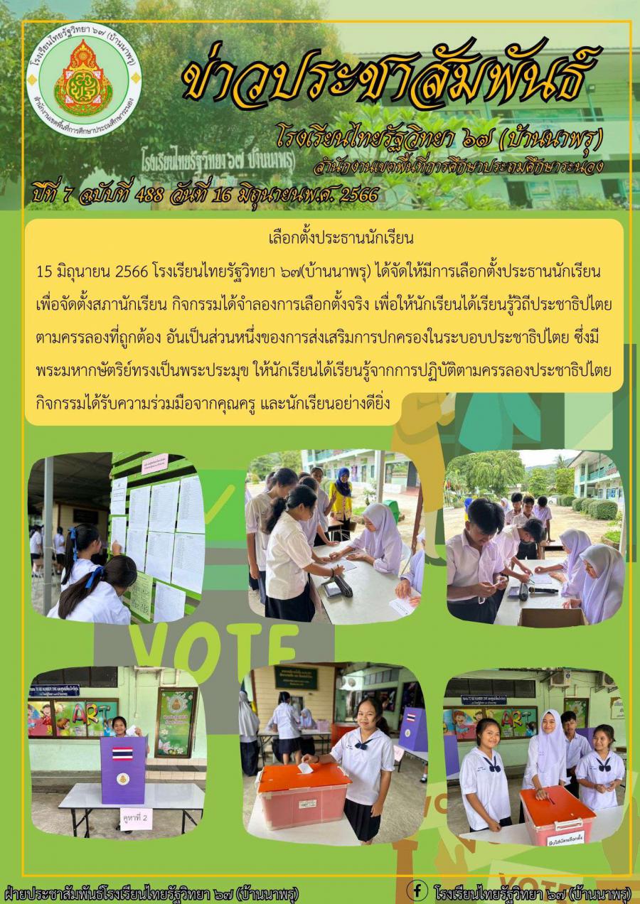 ฉบับที่ 488 /2566 เลือตั้งสภานักเรียน