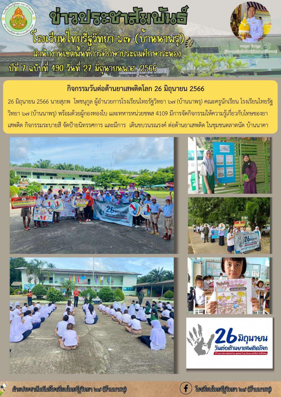 ฉบับที่ 490 /2566 กิจกรรมวันต่อต้านยาเสพติดโลก 26 มิถุนายน 2566