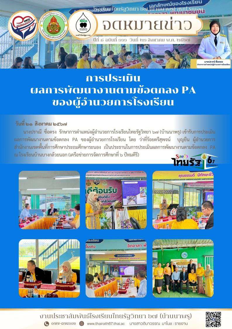 ปีที่ ๘ ฉบับที่ ๑๑๑ การประเมิน ผลการพัฒนางานตามข้อตกลง PA ของผู้อำนวยการโรงเรียน