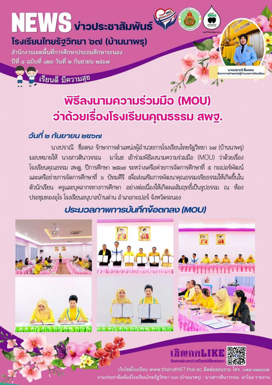 ปีที่ ๘ ฉบับที่ ๑๒๖ MOU โรงเรียนคุณธรรม สพฐ.