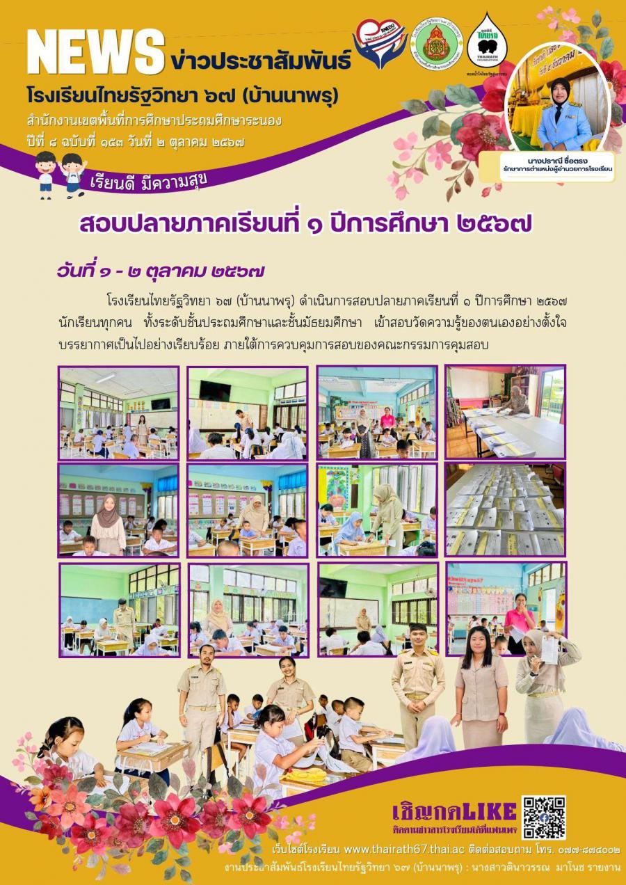 ปีที่ ๘ ฉบับที่ ๑๕๓ สอบปลายภาคเรียนที่ ๑ ปีการศึกษา ๒๕๖๗