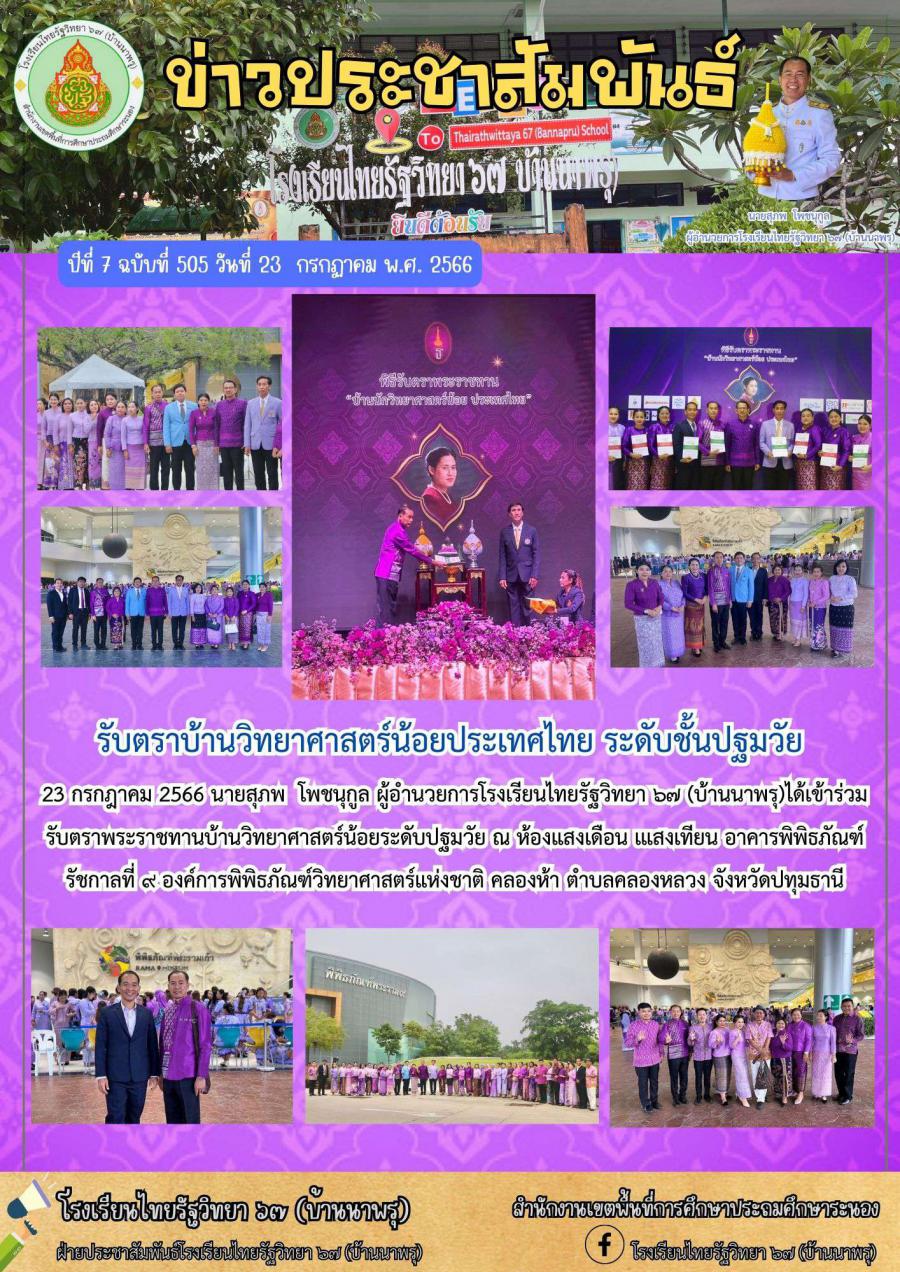 ฉบับที่ 505 รับตราบ้านวิทยาศาสตร์น้อยประเทศไทย ระดับชั้นปฐมศึกษา